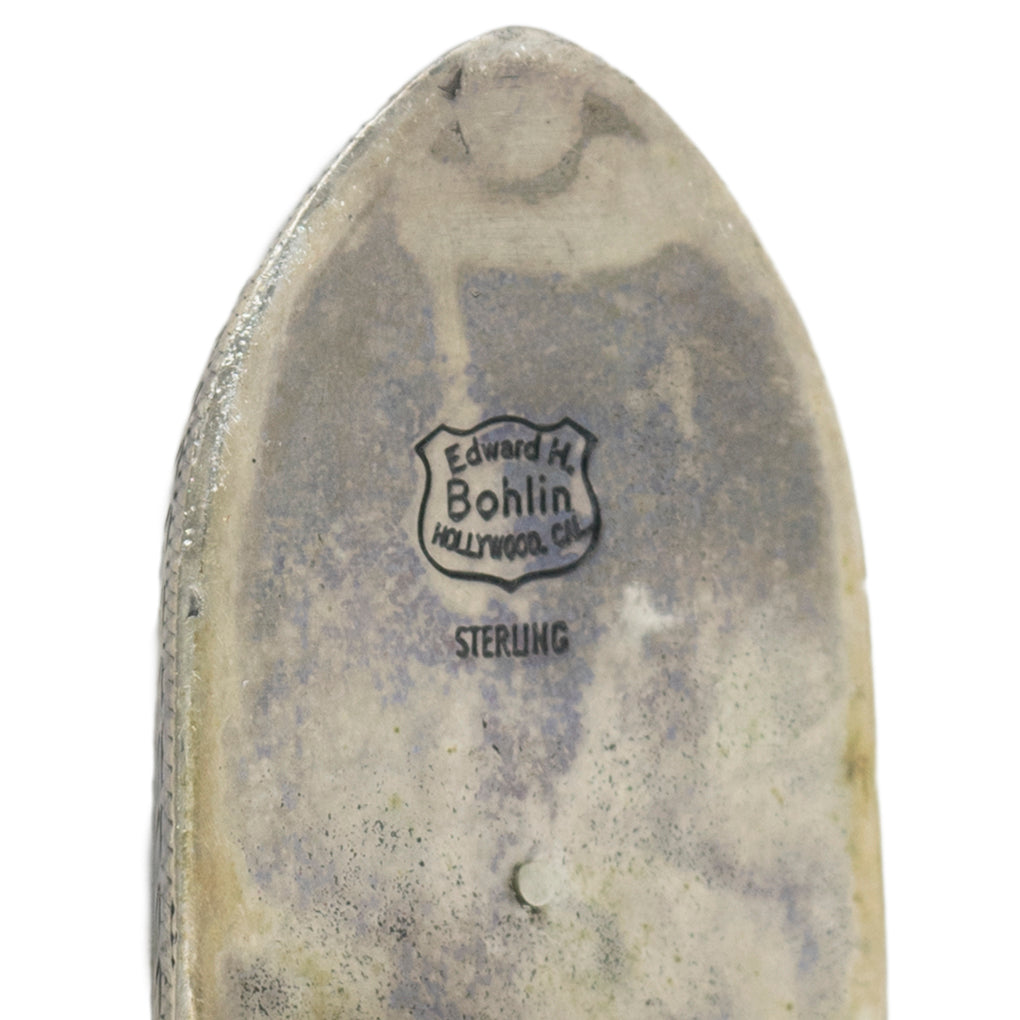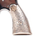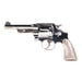 Smith & Wesson 1st model hand ejector ("triple lock") DA revolver, .44 S&W Special cal, 5" barrel, re-nickeled finish, custom engraved Bohlin silver grips with LA County sheriff's badge medallions and gold initials on the right grip "WRT", #2045 (and a star on the butt strap) with factory letter indicating the gun was shipped from the factory on April 21, 1910 and delivered to Union Hardware & Metal Co, Los Angeles, CA with a 5" barrel, nickel finish and checkered walnut grips. The letter also states "The star next to the serial number indicates that the revolver was returned to the factory for refinishing or rework". The gun is also accompanied by a custom fancy tooled leather silver mounted holster rig. This gun and rig are accompanied by a letter and file of information from noted Western historian and author Lee Silva who discovered the gun in 2009 and was able to determine that it was previously the property of Warren R Tate, a member of LA Sheriff E.W. Biscalluz's "Silver Mounted Posse", one of five Board of Governors of the Posse and the Chairman of the Membership Committee in 1951. Tate, according to an LA Times article dated May 21, 1945, won the silver mounted division for men at the Chino Rancho Ride and was apparently a life-long rider in silver-mounted groups and posses and was an auto dealer in Pomona, CA. Mr. Silva also indicated he located the Buscadero style leather holster and belt marked "Hand carved by I.D. John, Los Angeles, California" in Paso Robles, CA and added the sterling silver Ed Bohlin "Ranger" style buckle set and silver conchos to the holster and belt in order to pair the rig with the Smith & Wesson. The gun is in overall good condition as refinished with a very good bore, crisp action and good markings; the Bohlin grips are beautifully accomplished and in find condition; the holster rig is overall very good showing find tooling; the Bohlin silver mountings and conchos are finely accomplished and accent the rig nicely. A classic parade set identified to a Southern California businessman from the mid-1900's. FFL required