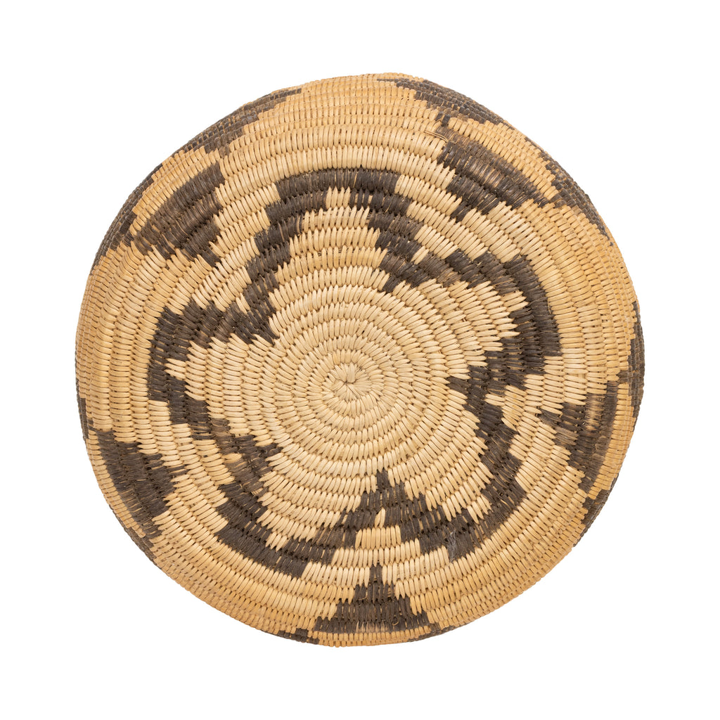 Apache cylindrical basket with geometric design. 5 1/2"H x 6 1/2"D.