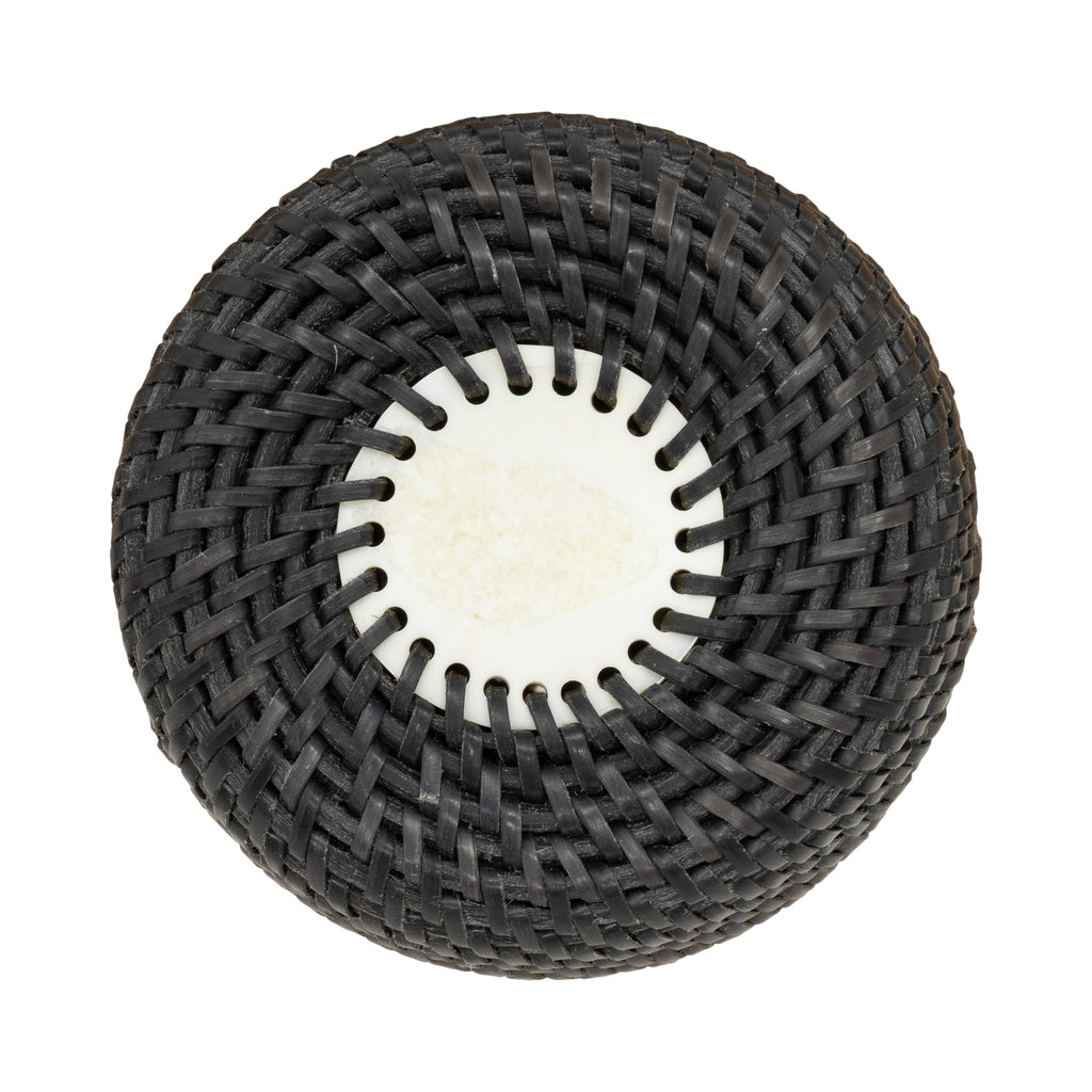 Baleen basket with walrus ivory cow walrus finial with baleen decoration. Bottom signed Carl E. Hank. 2 ½”D x 3 ¾”H top of finial. Carl Hank, Inupiaq, is a baleen basket maker born and residing in Anchorage, Alaska. The story of baleen basketry as an art form that cannot be told without the Hank family. For generations they have kept this unique and laborious weaving tradition alive. Carl is the great-grandson of master weavers Carl and Eunice Hank. His uncle is noted weaver Harry Hank. Carl continues to develop his skills and style and is gaining a reputation as one of the most accomplished baleen basket weavers working today. Baleen is a material obtained by Inupiaq and St. Lawrence islanders from harvested whales, particularly the bowhead. For over half a century, Alaskan Inupiaq Eskimos have created baskets from baleen, a keratinous substance from the mouths of plankton-eating whales. Although not as prevalent as ivory, baleen basketry significantly supports the livelihoods of weavers in arctic villages in Alaska. Collectors of Alaskan Native art highly seek these baskets, with contemporary weavers producing beautifully shaped, finely woven pieces, some featuring multicolored baleen. Today, there are only a handful of people who weave baleen baskets and in limited areas. Most baskets are twined. The baleen is stripped, soaked in water and then woven. Typically, weavers start these round baskets with an ivory disc at the bottom, which has holes around its periphery. They then finish the top with an ivory or bone ornamenting the lid, often adorned with finial figures. Only Alaskan Natives are allowed to harvest and use baleen.