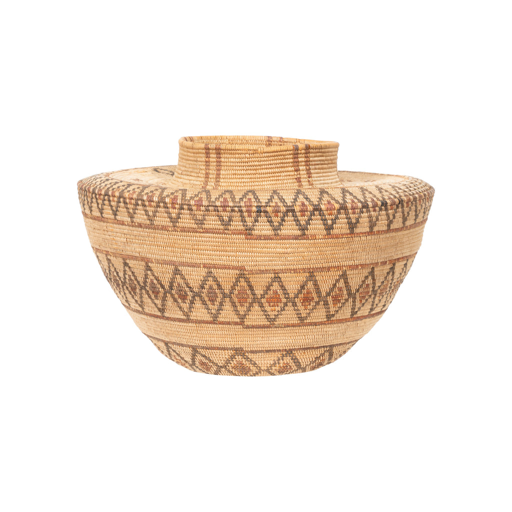 Kawaiisu polychrome bottleneck basket. Extremely fine and tight weave. Very rare. 9 1/2"D x6"H