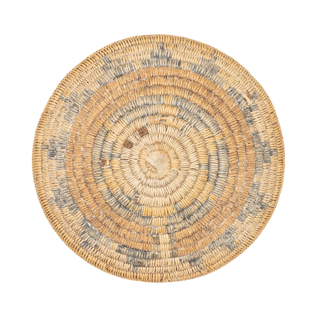 Navajo wedding basket. A used piece with cornmeal residue, and cloth center. 19th Century. 4" x 3"