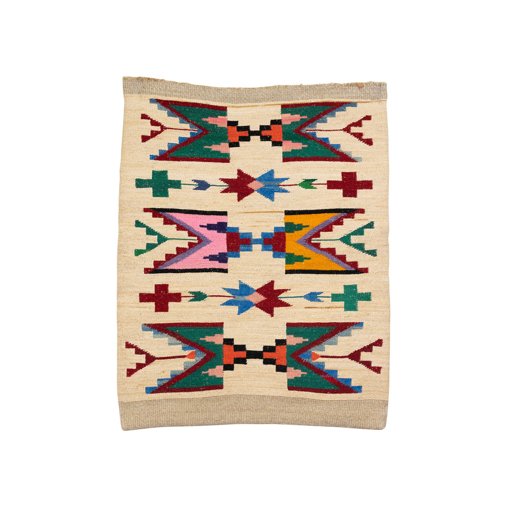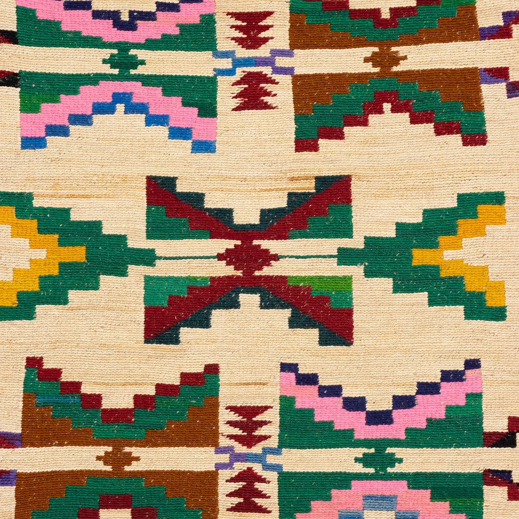 Nez Perce corn husk. Linen on corn husk. Different geometrics both sides. Very bright. Trunk piece. Finely woven.