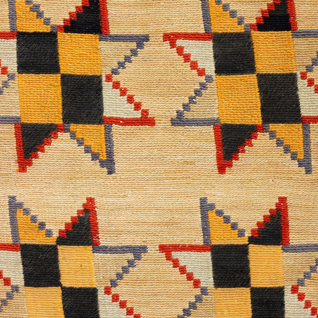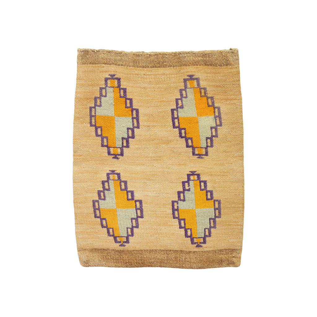 Nez Perce corn husk. Linen on corn husk. Different geometric both sides. One with valero stars.