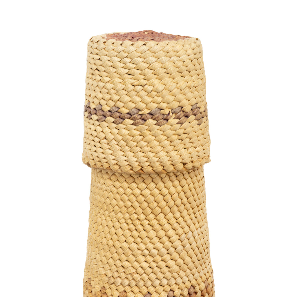 Nuu-chah-nulth pictorial basketry covered bottle with eagle and whale. 10 1/2"H x 4 1/4"D