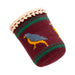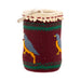 Plateau sally bag with three robins. Made of yarn with brain tanned and beaded rim. 5"H x3 1/2"