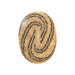 Pomo boat basket. Under the name Pomo are some 30 small tribes. The tribes which made these baskets live in Lake Sonoma and Mendocino counties, and are examples of their best work. The materials used are California sedge, nut pine, black rooted sedge, Sitka willow, Douglass spruce beaked hazel, California flax, red fir, poison oak, bracken, bullrush, nutmeg, Oregon grape, syringa, maiden-hair fern, digger pine, green briar, willow, redbud, bracken, calycanthus and hazelnut. 7" x 10" x 3"