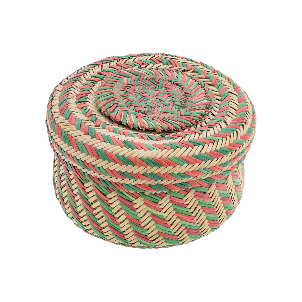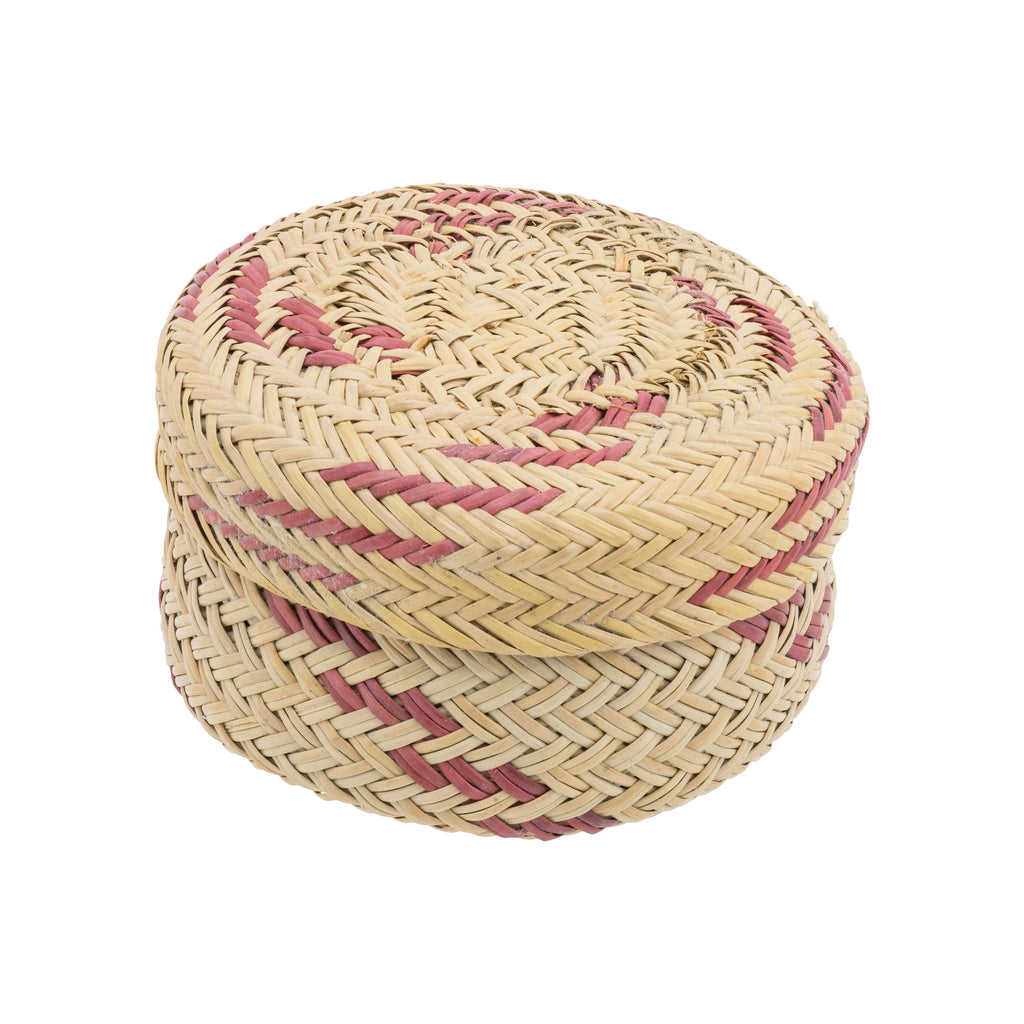 Set of four Tarahumara, Northern Mexico handmade storage baskets with lids. 4" each