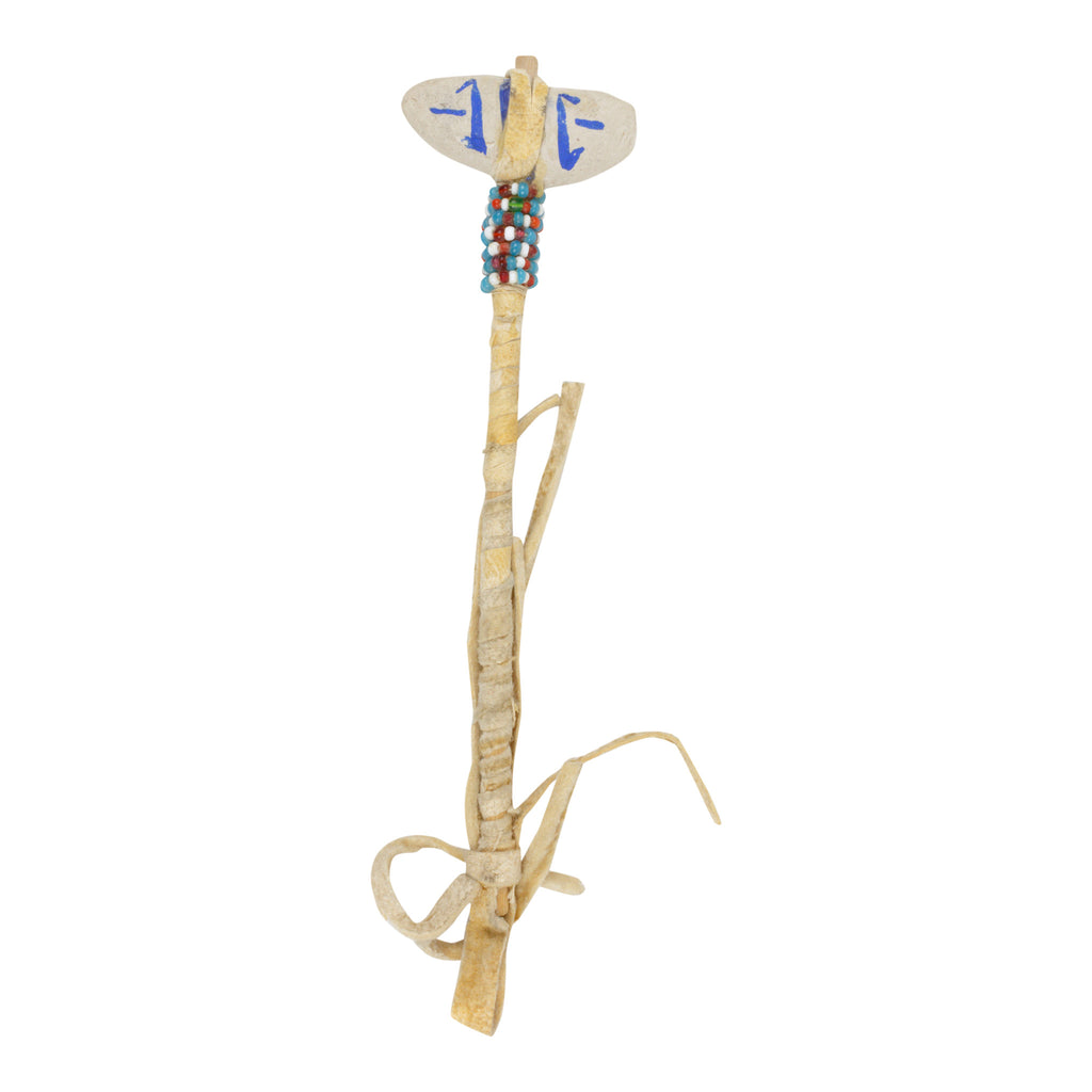 Coeur d'Alene child's moccasins with brain tanned fawn skin and floral beadwork design. Came with child's toy war club.