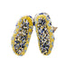 Lakota baby moccasins. Yellow with blue and white and fully beaded salt and pepper soles. Sinew sewn.