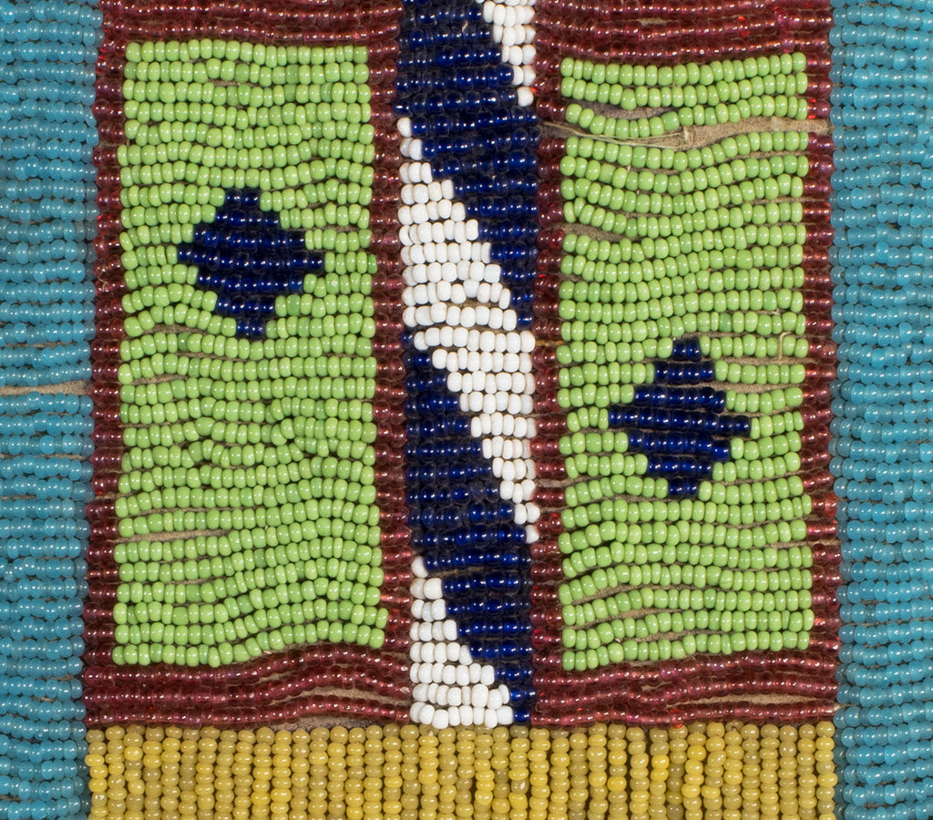 Fully beaded Nez Perce made pouch with classic design. Sinew sewn on brain tanned elk hide with hide drops.