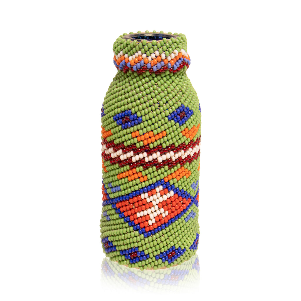 Paiute beaded bottle in lime green.