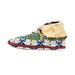 Sioux fully beaded hide moccasins. Sinew sewn. Beaded with colors of pea green, red white heart, white, greasy yellow, and dark blue in buffalo hoof design. Brain tanned antelope hide. A rare youth size. Fully beaded moccasins were made as special gifts for elders, respected individuals, or during rites of passages for events such as births, marriages, or graduations. Because of the skill and time required, they are collected as art pieces or displayed in museums to preserve cultural history.