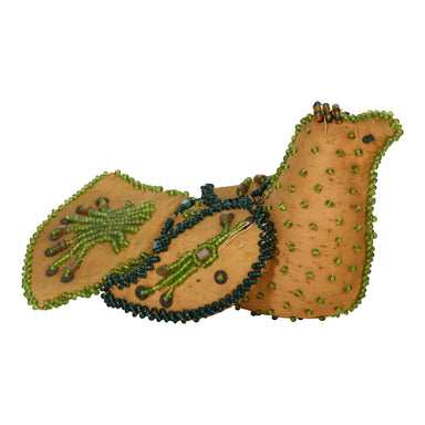Iroquois made beaded whimsy wall pocket in the form of a boot with beaded birds and elephant. 10" x 7".PERIOD: Late 19th Century ORIGIN: Northeast ...