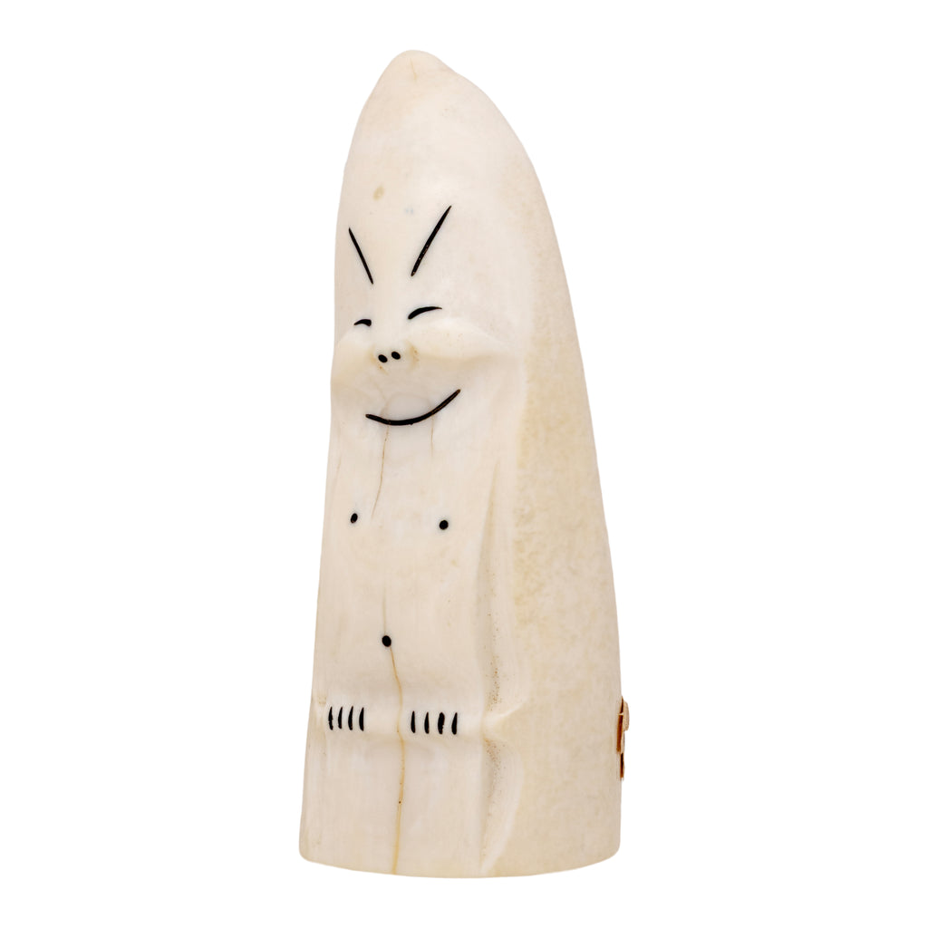 Alaskan billiken carved of a sperm whale tooth with Alaskan Native Craft label. 3"
