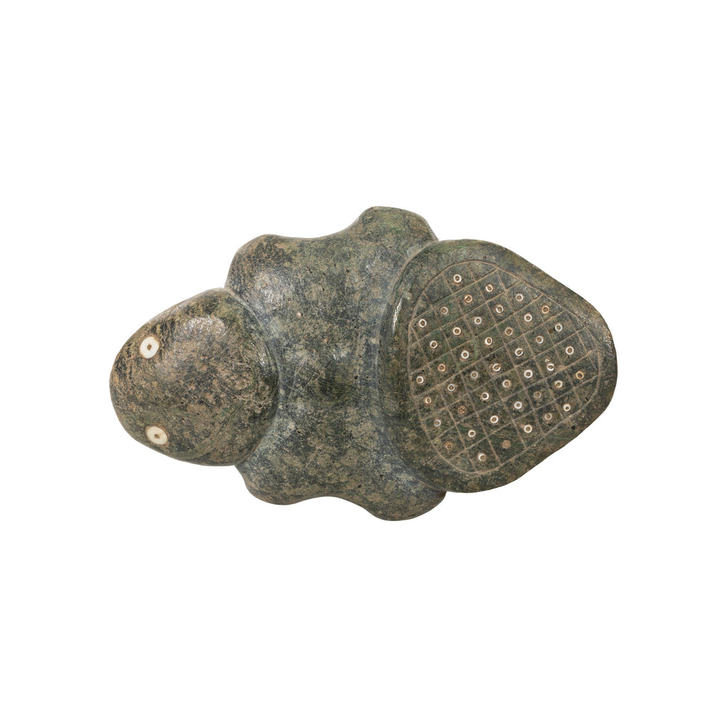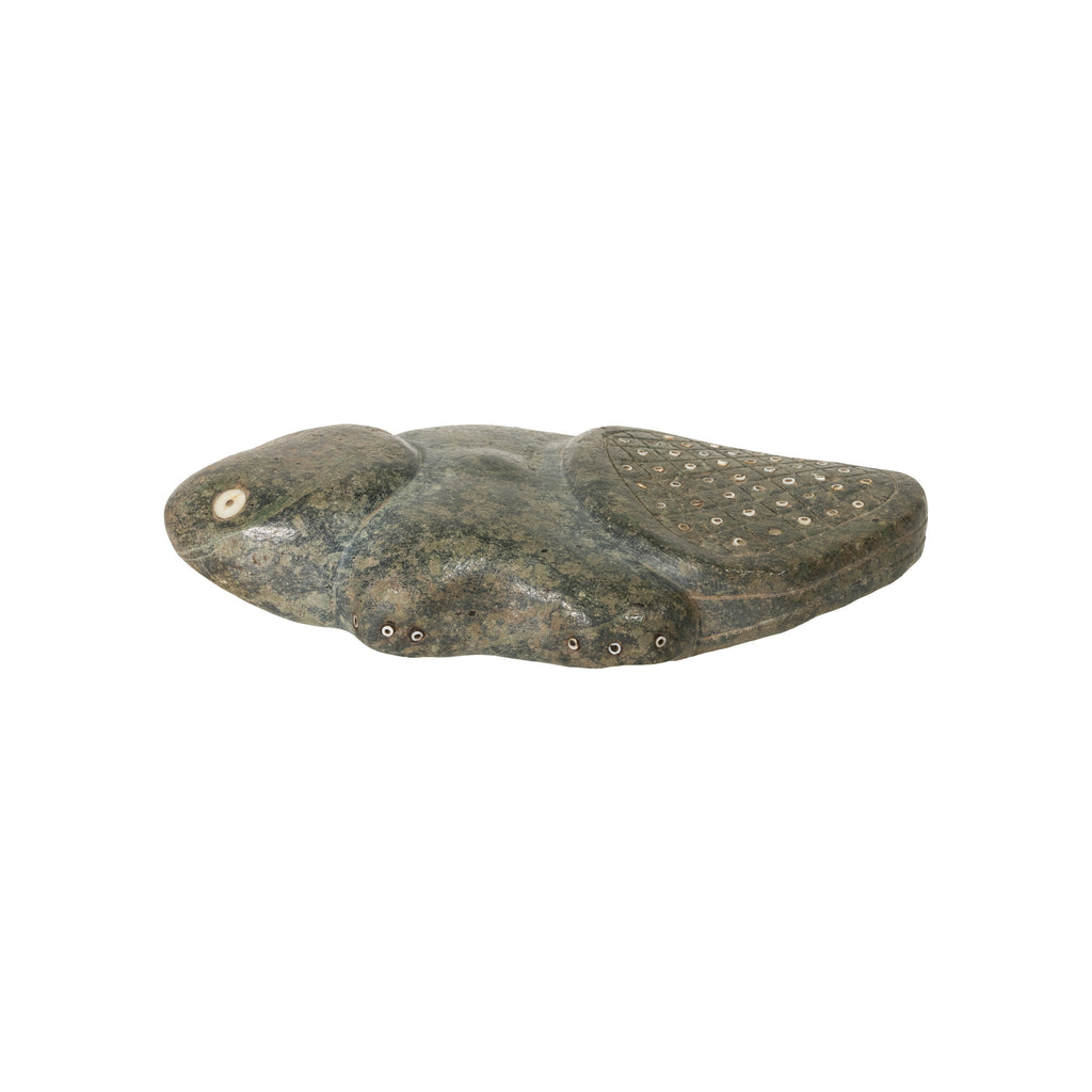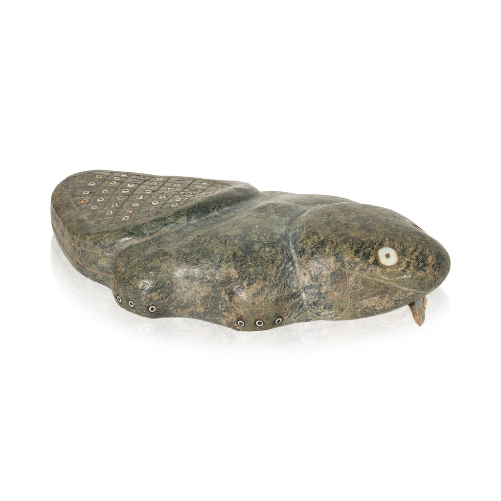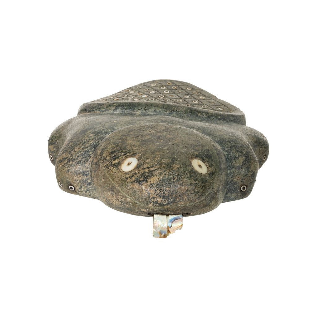 Alaska Inuit carved and decorated beaver fetish with inlaid shell beads and abalone teeth. Patina from fondling.