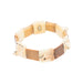 Inuit carved ivory bracelet with natural colors of prehistoric ivory and interspersed ivory fetishes of sea and wildlife. Strung with double elastic stretch bands. These carvings were usually small carvings from walrus ivory, representing local animals and Inuit themselves, going about everyday life. Seals, caribou, polar bears, birds, and other animals important to Inuit’s survival were often represented.