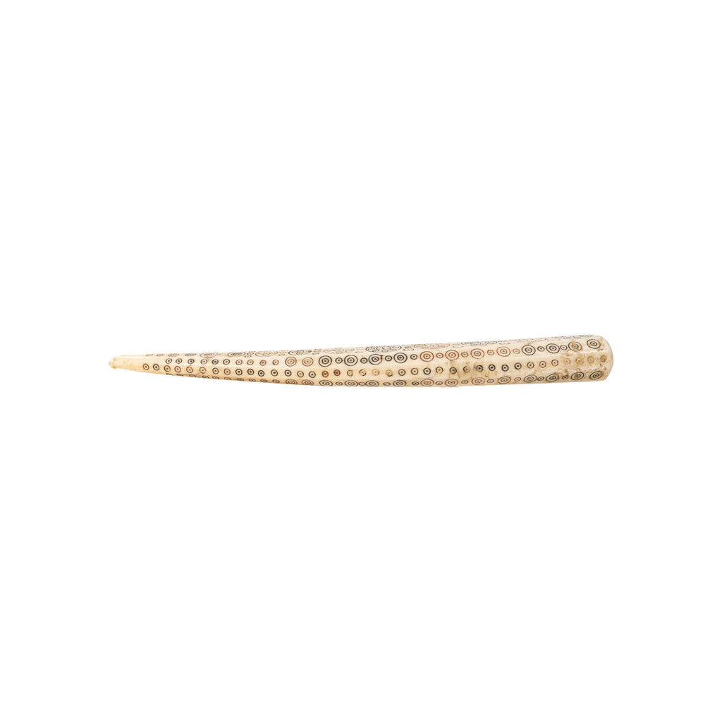 19th Century (or earlier) sailor whimsical scrimshaw on walrus ivory. Collected by Earl Gans.