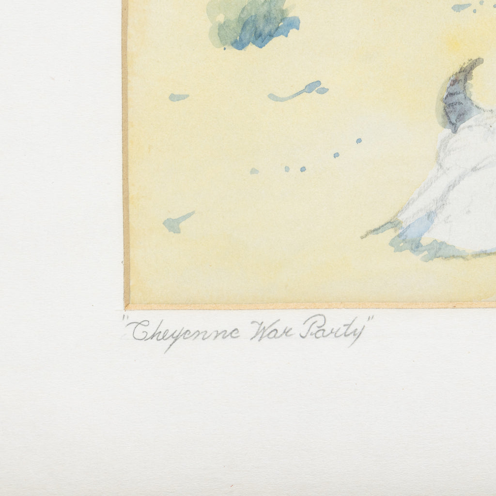 (1899 - 1956) Watercolor; 8" x 12" framed. Chicago's cowboy painter of the "old west." Leonard spent much of his time in the west living with the Native Americans and roaming the Great Plains and desert country. While he traveled, he painted and captured scenes from working as a ranch hand, roaming, living with the Natives, exploring the Grand Canyon, Badlands and life in cattle country. He studied at the Chicago Art Institute and Chicago Academy of Fine Arts. No doubt his great love and admiration for early rough and rugged west of long ago was his major influence. He preserved and described action which showed characters true to their habits and period - Frontier days of the Plains, the Gold Rush, frontier towns, stagecoaches, the Pioneer Days, Buffalo Bill and the Scouts - the hardships and struggles of the most important epoch of nation's history.