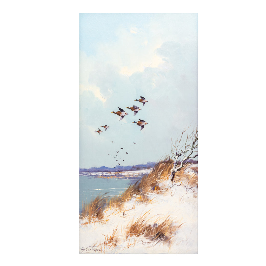 (1940 - ) Oil on canvas; 12" x 24". Canadian artist specializing in wildlife. Pair