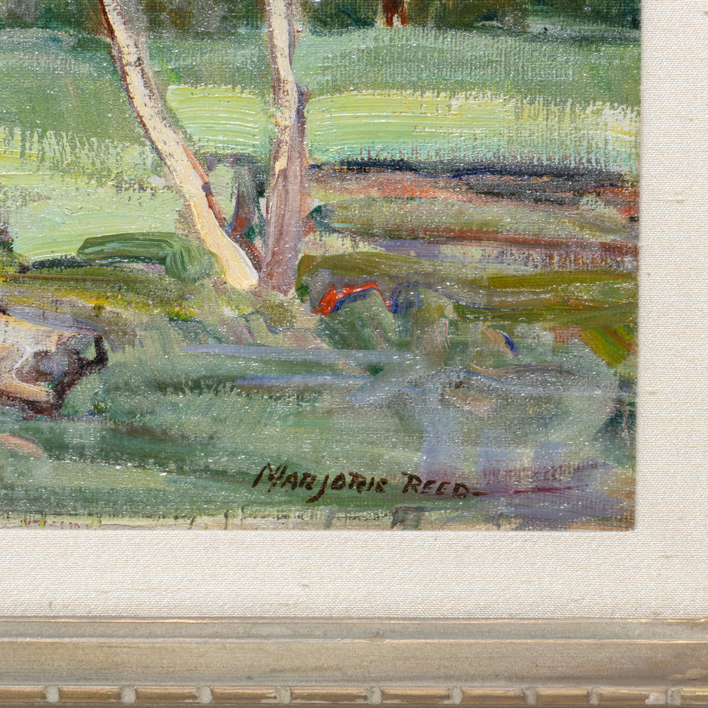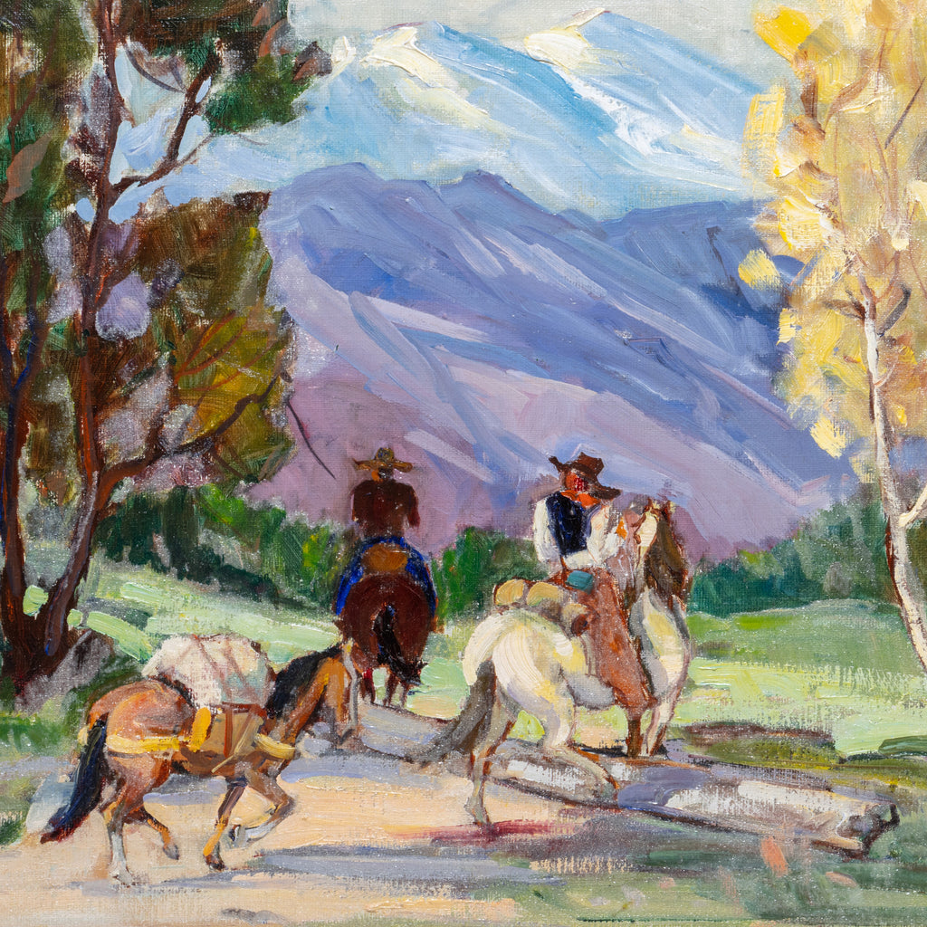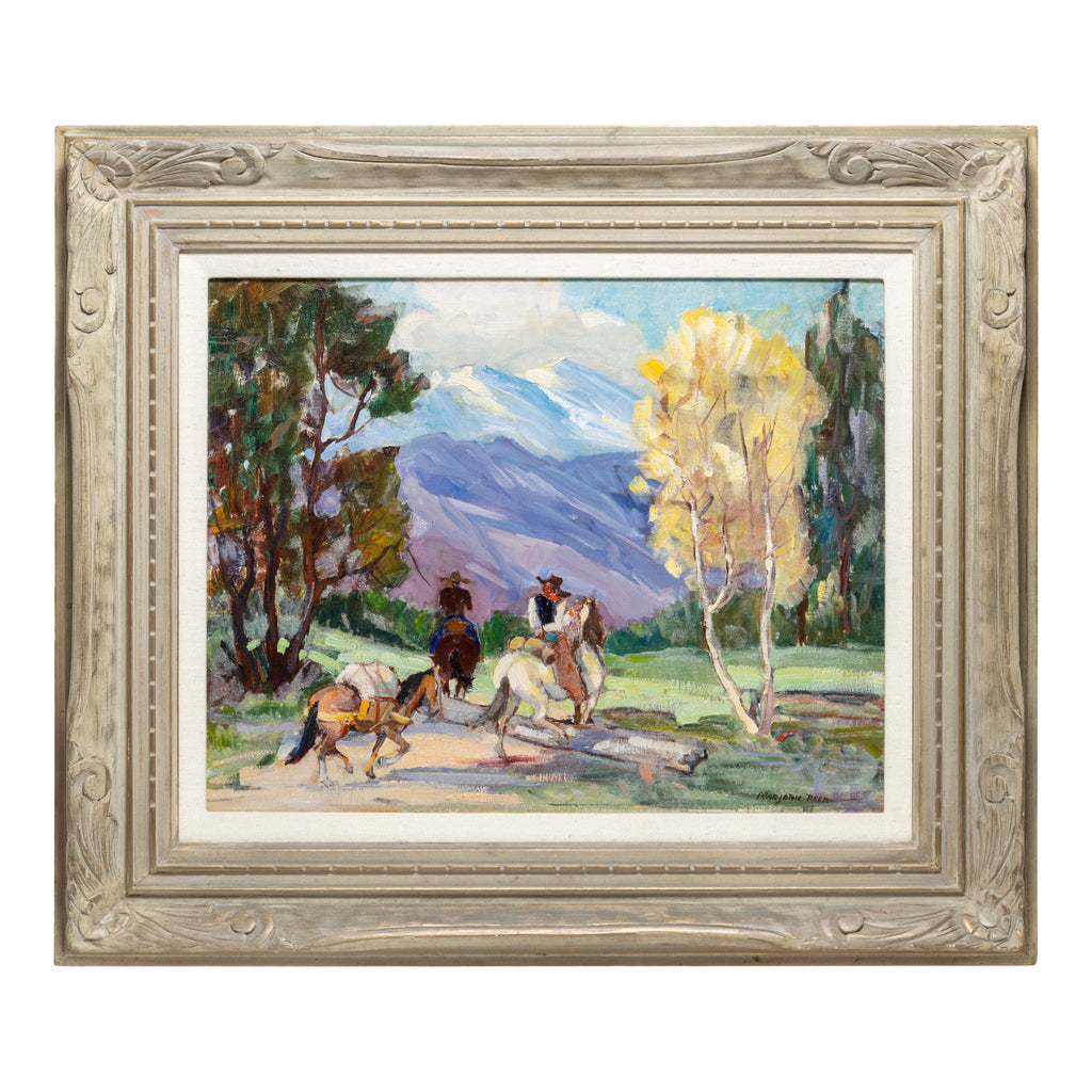 Pack Train by Marjorie Reed. 1915-1996. Oil on canvas. 16" x 20", frame 28" x 24". Purchased directly from the artist in 1946.