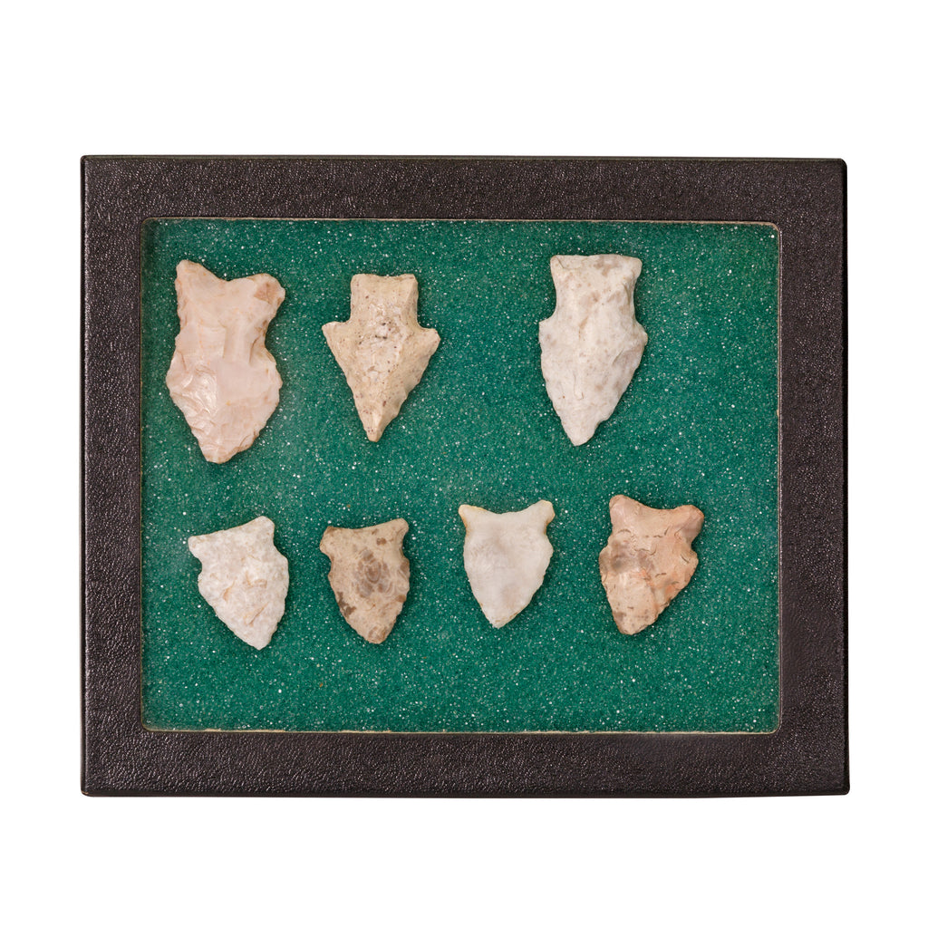 Collection of seven Iowa archaic points. This item is guaranteed to be of the time period and condition as described, has been exported legally and is legal to buy and sell under all international laws relating to cultural patrimony.
