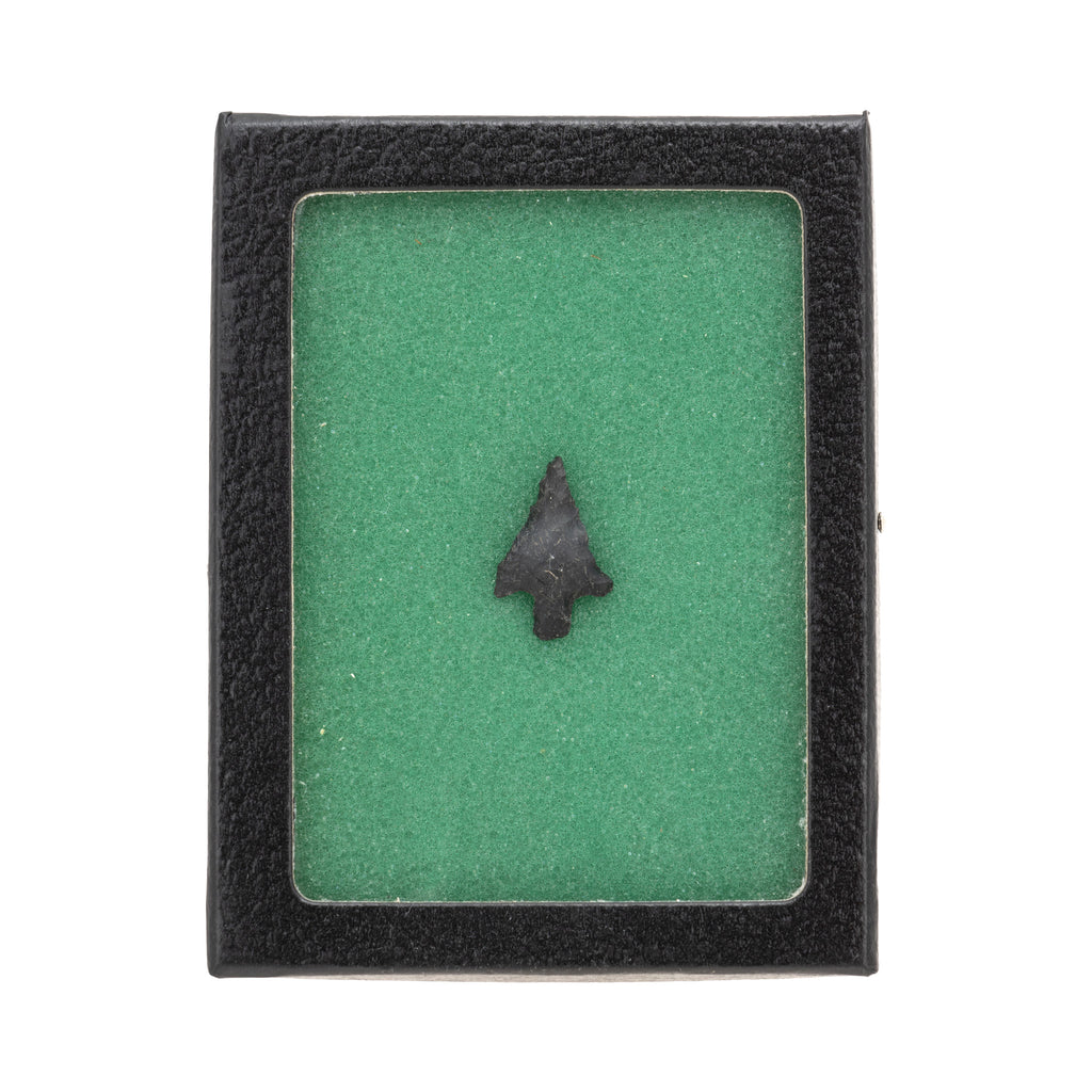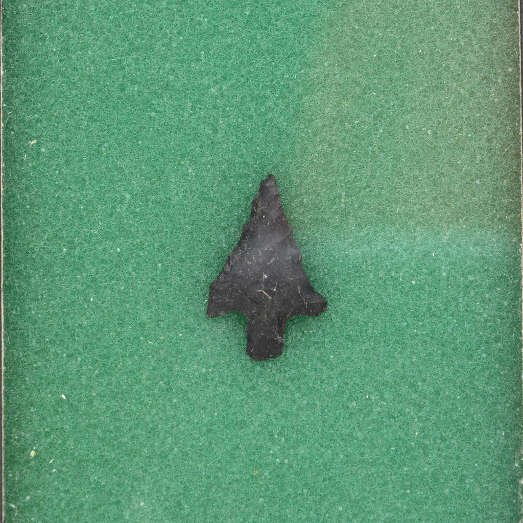 Prehistoric Snake River point. Classic historic phase. 700 - 150 B.P. ¾". Ex. Hank Johnson Collection. Hank Johnson was a geologist, and passionate collector of historical and ancient artifacts. Starting with relics and bottles from ghost towns, he later focused on Anasazi pottery and Pre-Columbian. He worked with the Denver Art Museum to verify authenticity, building a respected reputation in the collecting community. View the entire Hank Johnson Collection under Special Collections “Johnson.”