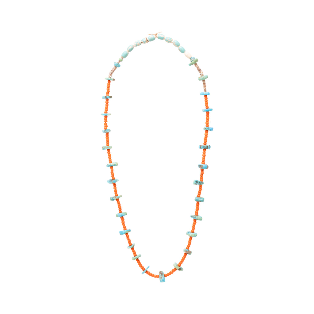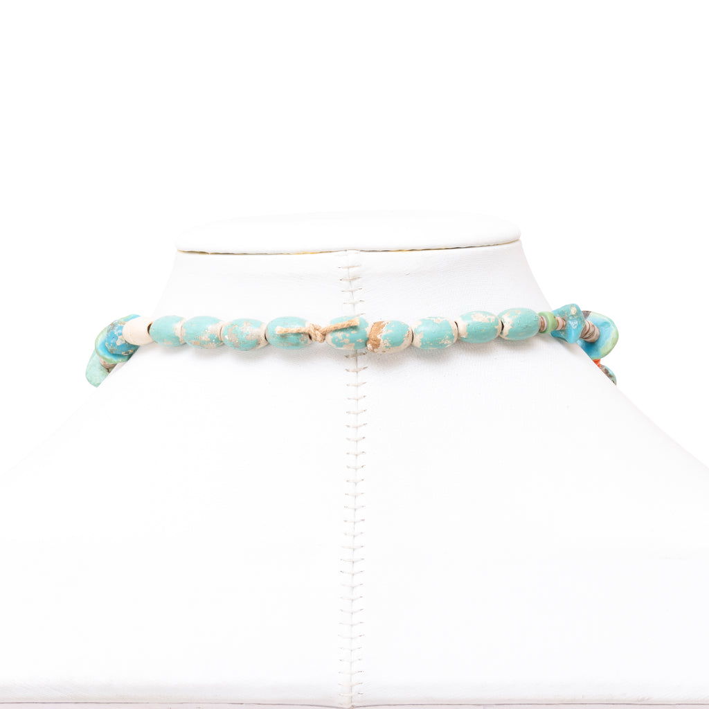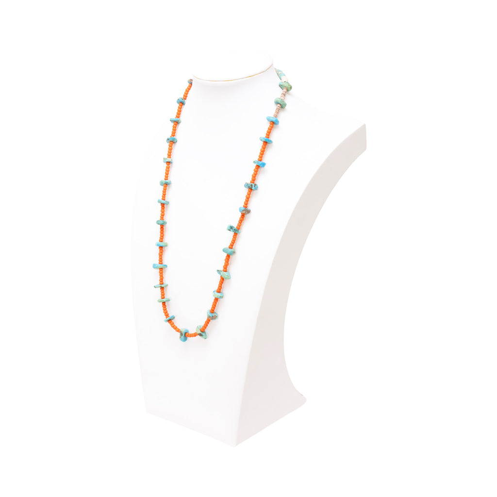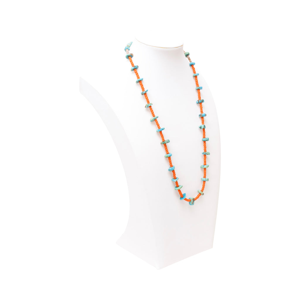 Navajo Kingman turquoise, coral, Heishi and wood beaded necklace by Navajo artist Sadie Yazzie. Purchased directly from the artist 11/17/66.