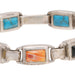 Navajo multi stone link bracelet by silversmith Christin Wolf. Turquoise stones one side, the other with alternating stones of turquoise, spiny oyster, onyx and lapis. Maker's marked and stamped Sterling. 7 1/2"L, 28.74 grams. Christin Wolf is a nationally recognized jewelry designer known for blending timeless lines and contemporary style with a vibrant southwest color palette.
