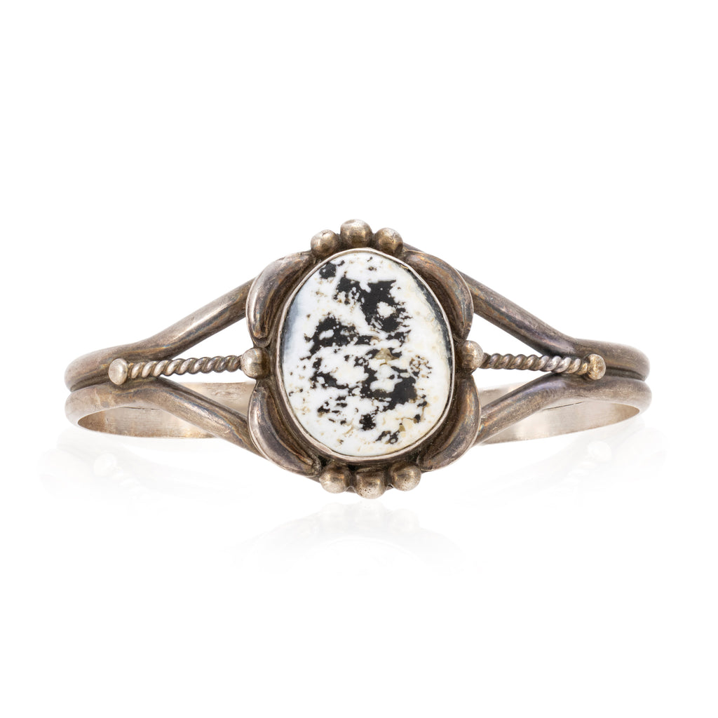 In recent years, there has been an increasing interest in high-quality Native American Jewelry. Whether it’s a vintage squash blossom necklace or a contemporary artisan bracelet, your jewelry could be increasing in value! This doesn’t mean you run out and pawn your grandma’s ring in hopes of getting rich. The age and condition of the piece, the quality of the stone, as well as the hallmark or makers mark dictate the value and desirability. While this is true with nearly all Native American Jewelry, there is one stone on the market that is becoming ever-more desirable due mostly to its rarity. White Buffalo Turquoise. White Buffalo Stone, commonly called White Buffalo Turquoise, is from a single mine in Nevada. It's known for its distinct beauty and purity. While similar to turquoise in its structure and formation, its stunning white and black color is due to the lack of heavy metals like copper, iron and zinc, which are responsible for the characteristic blues, greens and yellows found in turquoise. With only a single mine in existence the value continues to increase as the resources are depleted. Due to its desirability and limited availability, consumers must keep an eye out for misrepresentations. The limited availability of the stone also means that high-quality pieces are hard to come by. A desirable piece of White Buffalo is hard, takes a nice polish and contains a black matrix of chert found in various patterns throughout the piece. Lesser quality stone will contain a higher volume of brown quartz. This is seen as an undesirable characteristic. Unique patterns such as spiderwebbing are a rarity and command a higher value. Quality silversmithing along with a prominent and well-known maker will only increase the value of White Buffalo pieces. Cisco’s takes pride in sourcing only the finest examples of White Buffalo Turquoise jewelry. Quality pieces are hard to come by and sell fast.