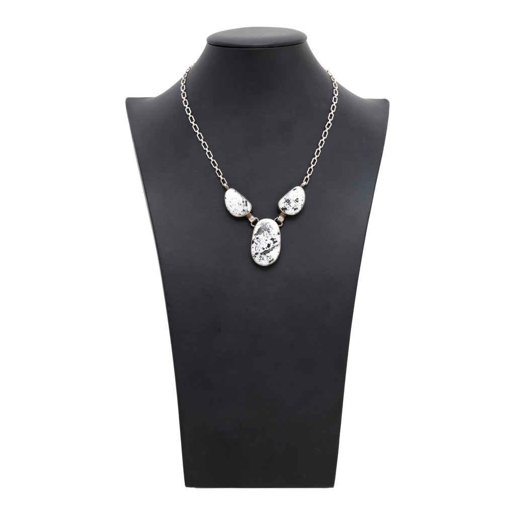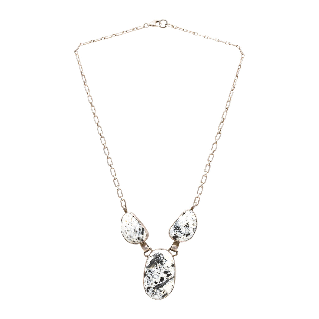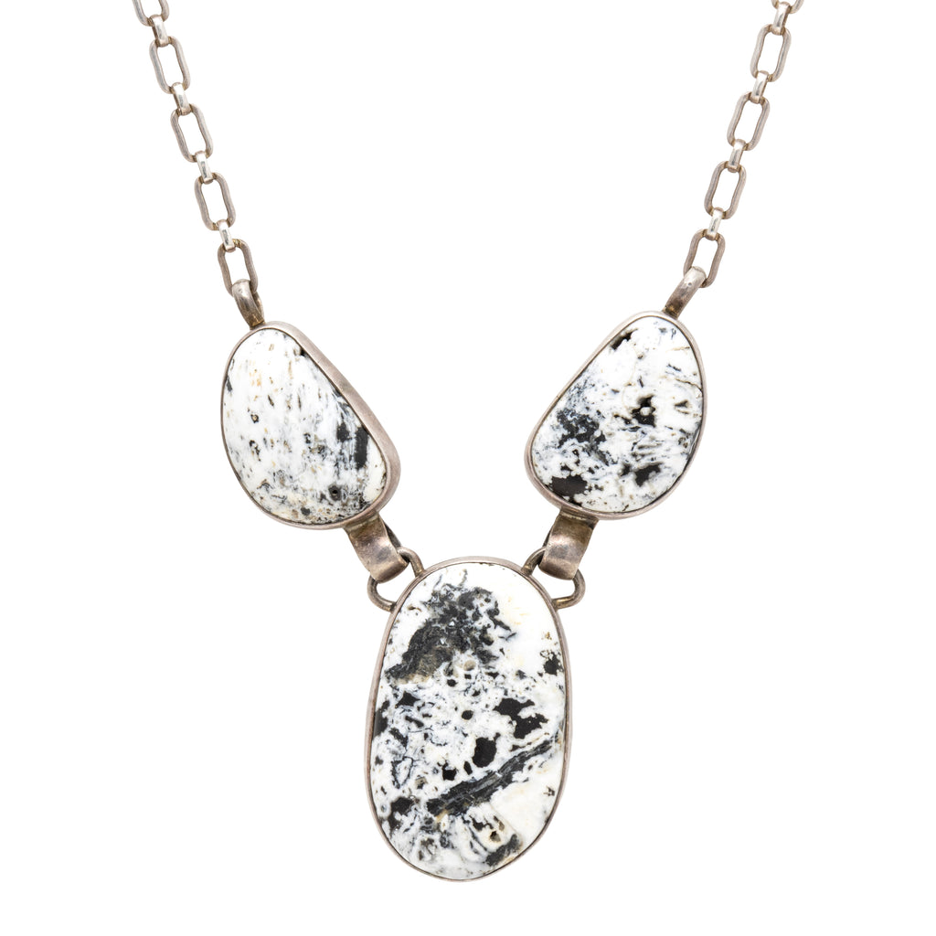 In recent years, there has been an increasing interest in high-quality Native American Jewelry. Whether it’s a vintage squash blossom necklace or a contemporary artisan bracelet, your jewelry could be increasing in value! This doesn’t mean you run out and pawn your grandma’s ring in hopes of getting rich. The age and condition of the piece, the quality of the stone, as well as the hallmark or makers mark dictate the value and desirability. While this is true with nearly all Native American Jewelry, there is one stone on the market that is becoming ever-more desirable due mostly to its rarity. White Buffalo Turquoise. White Buffalo Stone, commonly called White Buffalo Turquoise, is from a single mine in Nevada. It's known for its distinct beauty and purity. While similar to turquoise in its structure and formation, its stunning white and black color is due to the lack of heavy metals like copper, iron and zinc, which are responsible for the characteristic blues, greens and yellows found in turquoise. With only a single mine in existence the value continues to increase as the resources are depleted. Due to its desirability and limited availability, consumers must keep an eye out for misrepresentations. The limited availability of the stone also means that high-quality pieces are hard to come by. A desirable piece of White Buffalo is hard, takes a nice polish and contains a black matrix of chert found in various patterns throughout the piece. Lesser quality stone will contain a higher volume of brown quartz. This is seen as an undesirable characteristic. Unique patterns such as spiderwebbing are a rarity and command a higher value. Quality silversmithing along with a prominent and well-known maker will only increase the value of White Buffalo pieces. Cisco’s takes pride in sourcing only the finest examples of White Buffalo Turquoise jewelry. Quality pieces are hard to come by and sell fast.