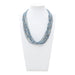 Six strands of light beaded lapis with silver beads interspersed for accent. Tied with sterling silver thimble clasps marked "sterling" with lobster claw fastener.