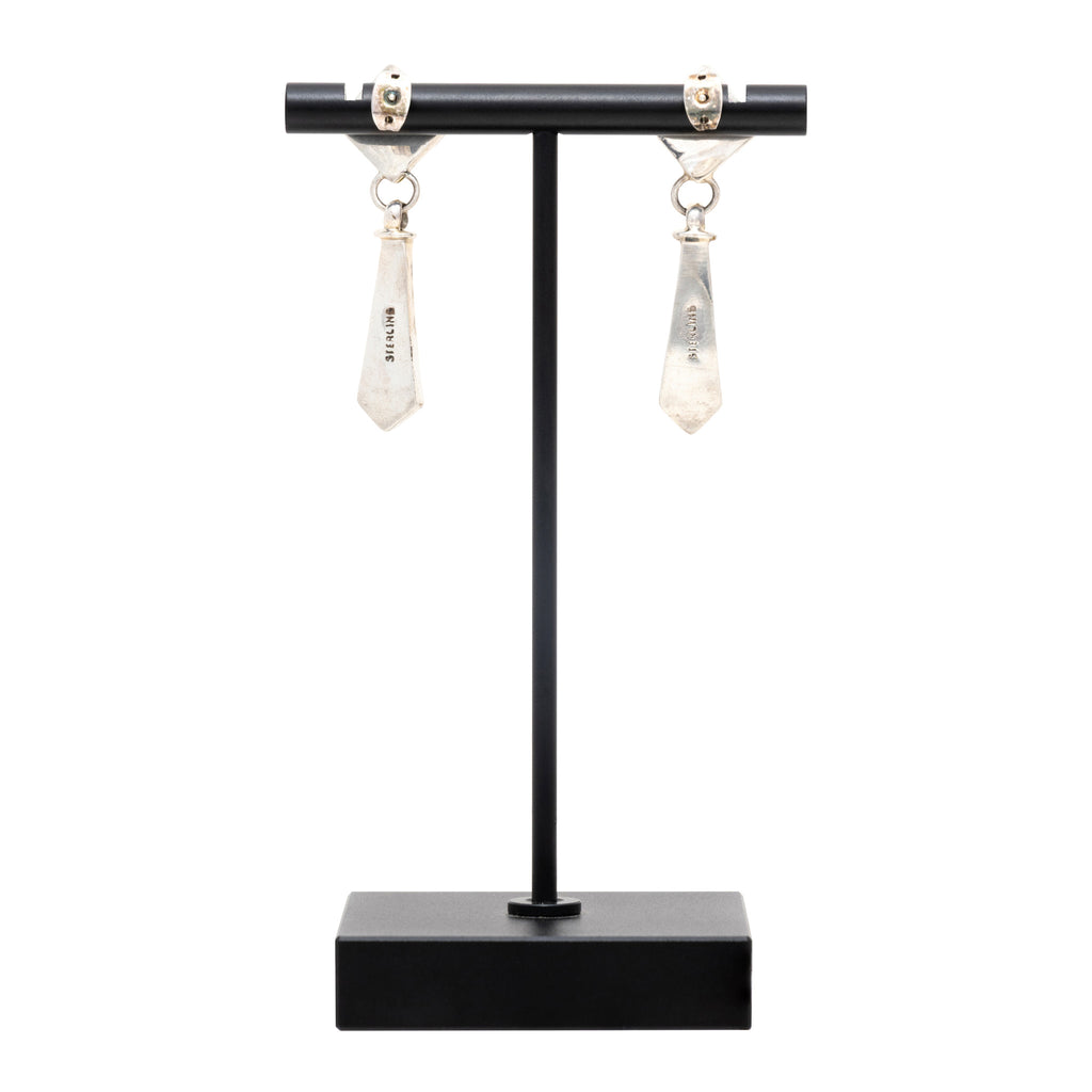Sterling silver and Kingman turquoise dangle earrings. Natural, untreated inlaid stones set in sterling silver with post backs. Stamped Sterling. 1 1/4"L