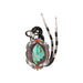 Beautiful piece of Carrico turquoise carved in the shape of Plains chief with full headdress surrounded by shadow box, outlined by silver leaves, scrolls and coral nuggets top and bottom.