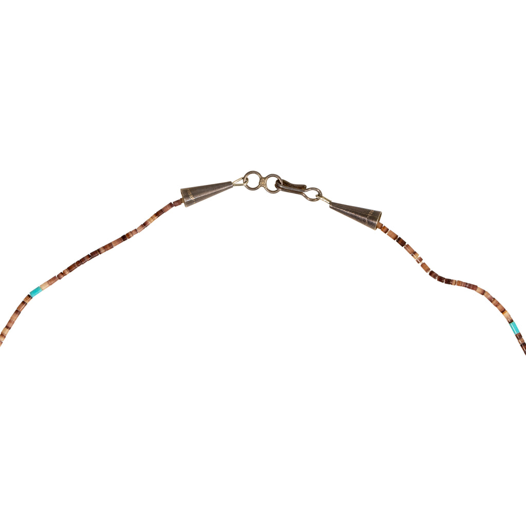 Zuni single strand fetish necklace with turtles. Spiney oyster, jet, turquoise