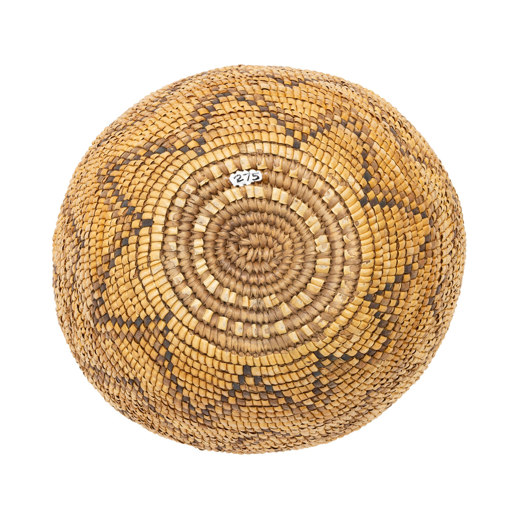 Cowlitz basket. Tight weave, minor rim wear. Golden patina.