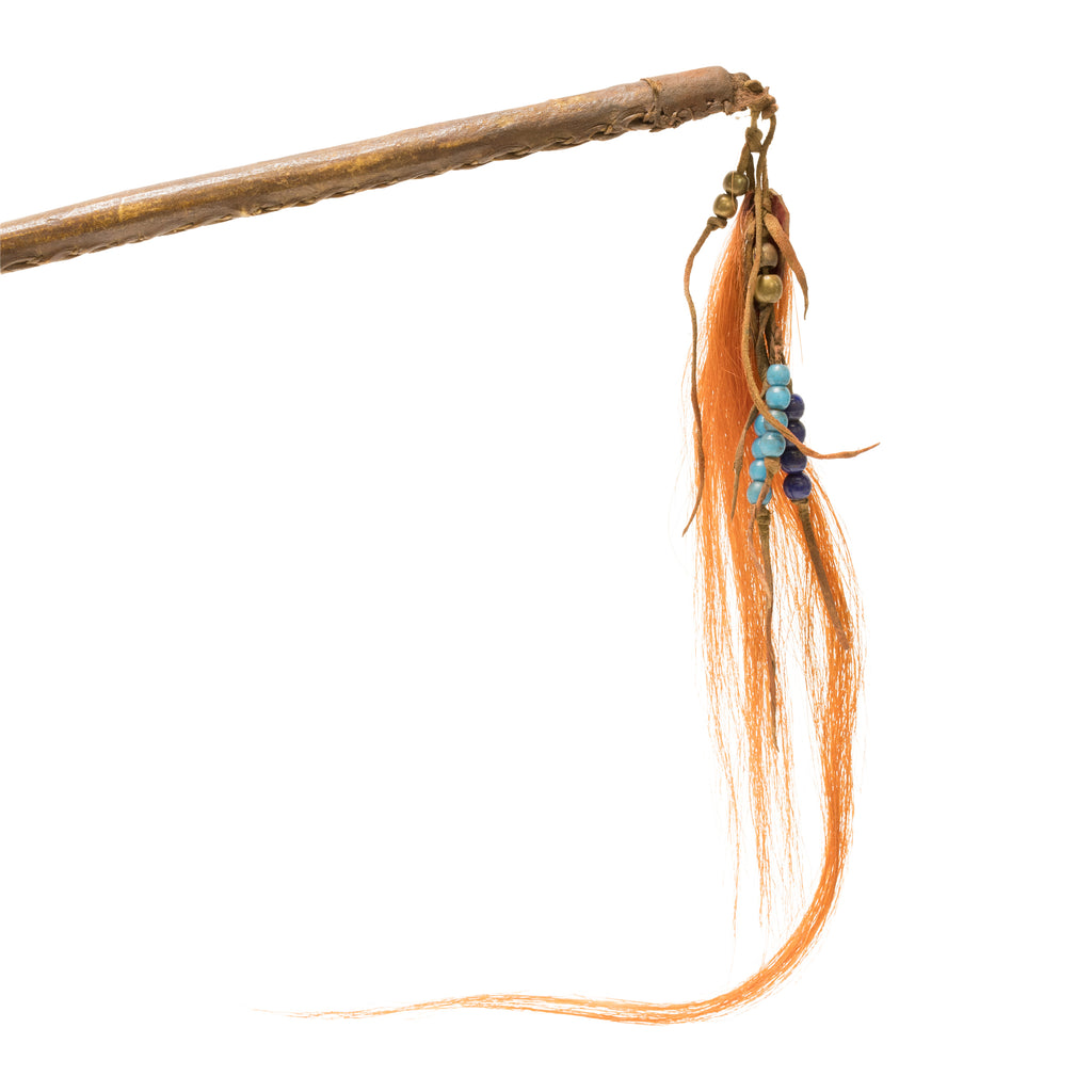 Sioux stone war club with drop, horsehair and padre beads. Highly polished, double pointed head. Haft wrapped with rawhide. Much patina from use. 22" Overall; Head 5"