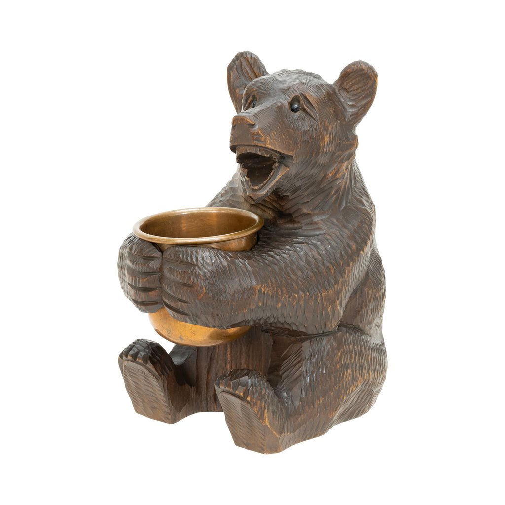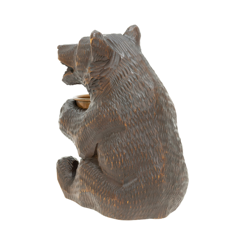 Black Forest carved sitting bear match holder; 4"W x 6 1/4"H.