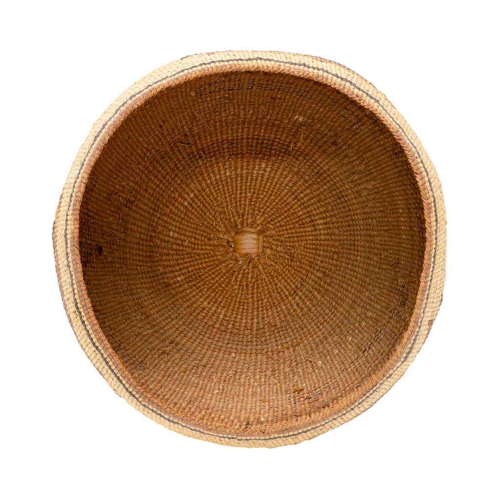 Hupa/Yurok basketry bowl. Exceptional imbricated open basket measuring 4 1/2" x 7".