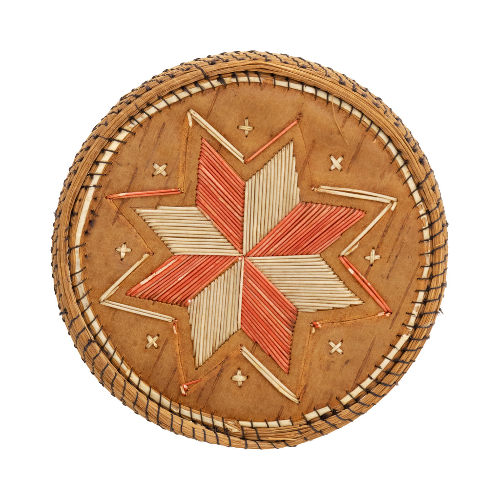 Ojibwa/Algonquin quilled birch bark baskets. Circa 1910. 4”D x 2 ½”.