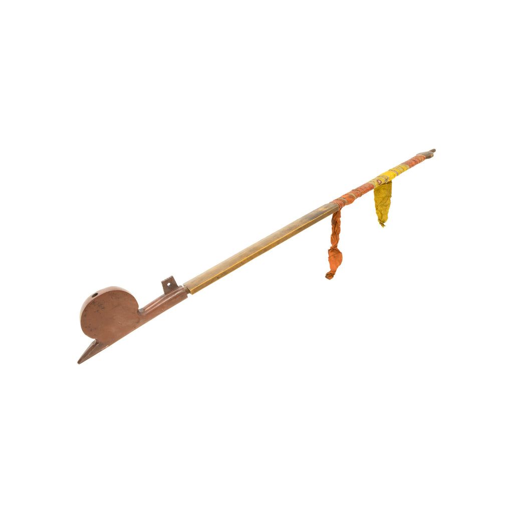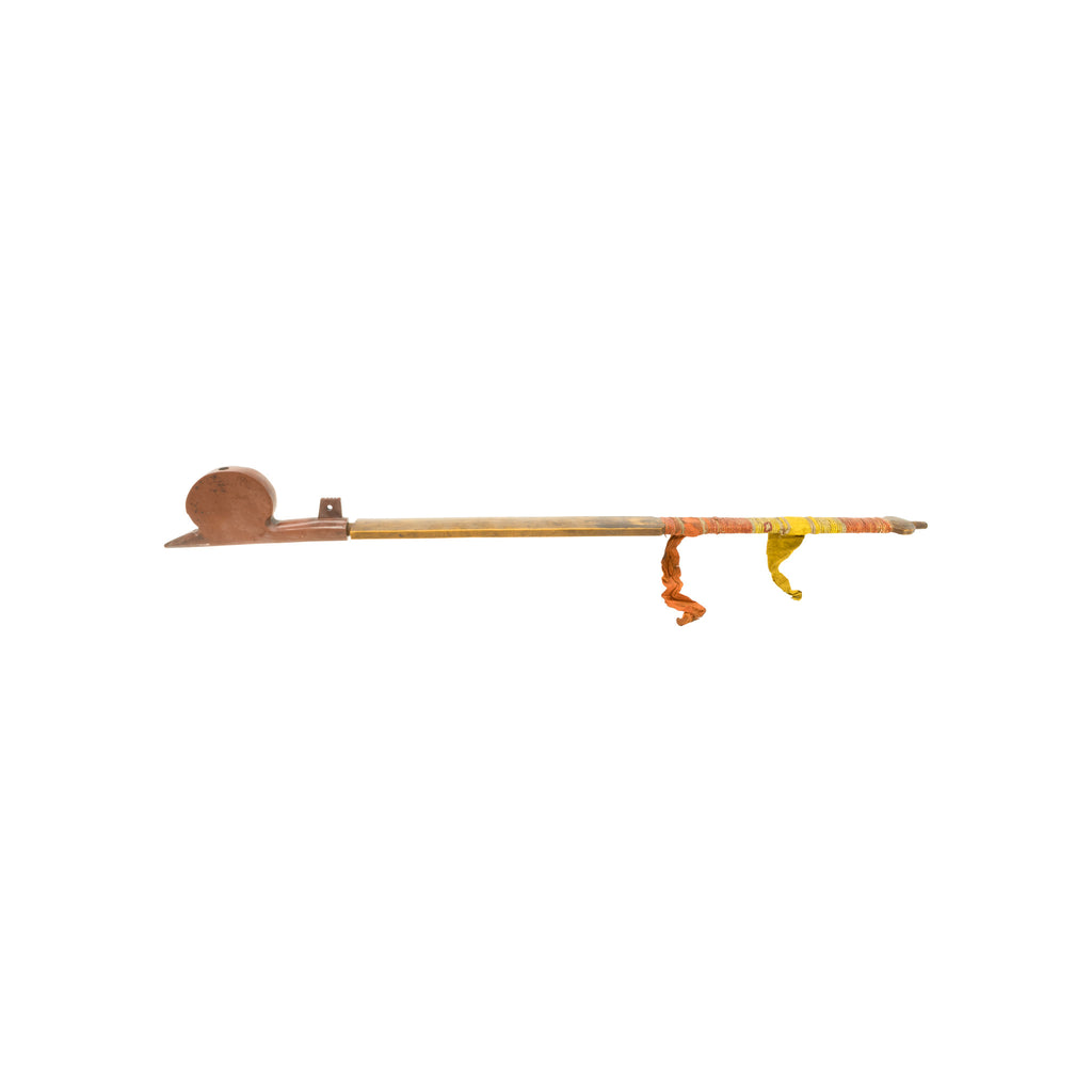 Pre-reservation Sioux catlinite pipe with rare style head and heavily decorated stem with quills and silk.
