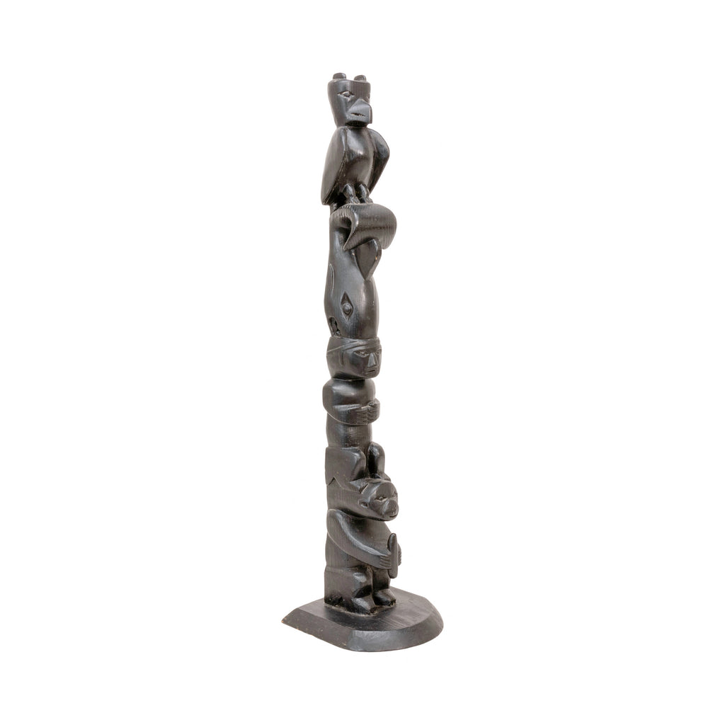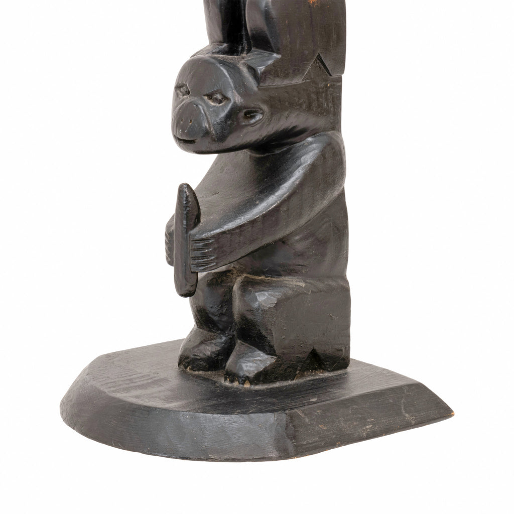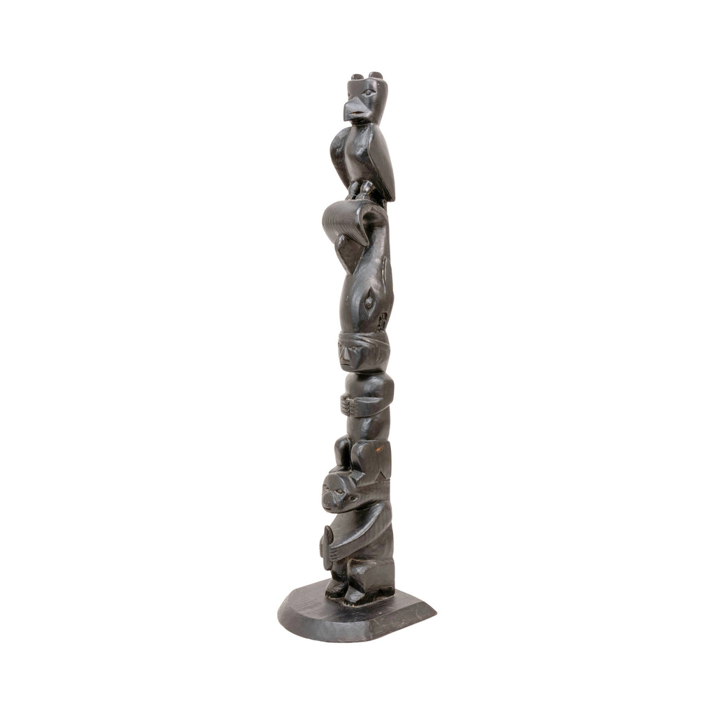 Northwest four figure totem from British Columbia. Old black paint and integral base.