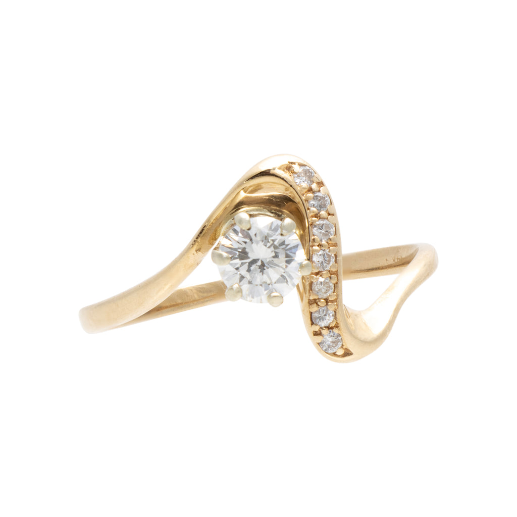 14k yellow gold and diamond ring. With .6ct center natural diamond surrounded by eight small stones.