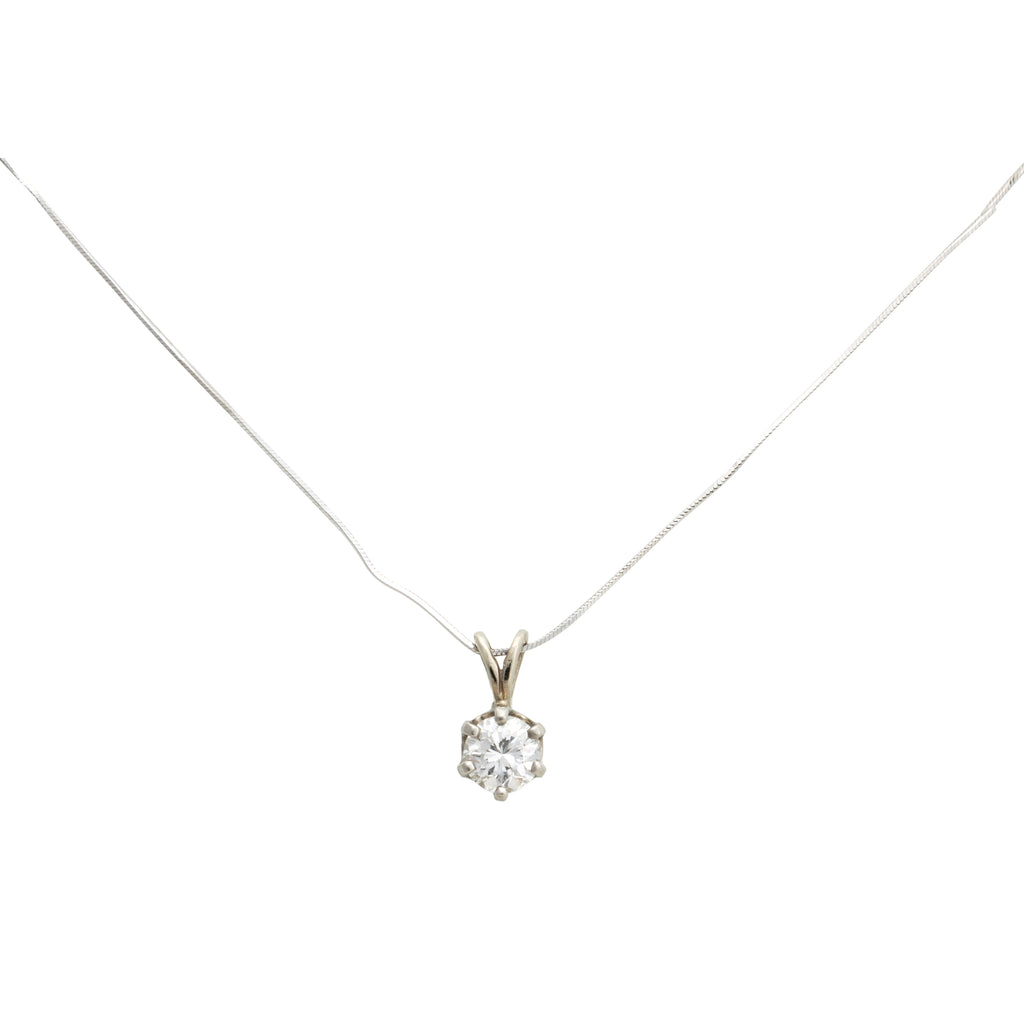 14k white gold and .78 carat natural mined solitaire diamond necklace. 14k white gold chian included.