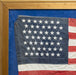 Alaska 49 star cotton statehood parade flag. 33" x 25" frame 34" x 41". For the first time since 1912, the United States flew a new flag, one with 49-stars. Unfurled on Independence Day, 4 July 1959, this flag signified the admission of Alaska as a state. The 49-star flag was used for only a year, since on 4 July 1960 a 50-star flag was adopted with the admission of Hawaii.The Heraldic Branch of the Quartermaster Corps was given the responsibility of designing the new 49 and 50 star U.S. flags. From 1957 to 1958 the Heraldic Branch analyzed over 1,900 proposed designs submitted by the public, and prepared suggested designs for consideration by President Eisenhower. From all of these suggestions and from a study of the history and traditions of the flag, it finally was decided to recommend arrangement of the 49 stars in seven staggered rows. The Philadelphia Quartermaster Depot made several prototype flags. On 3 January 1959, Presidential Executive Order 10798 set forth the design of the new flag.
