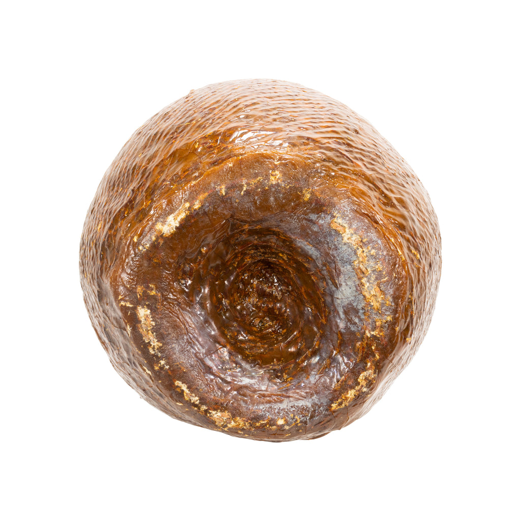 Large Apache tus water jar. Heavily pitch covered with embedded leather harness handles having two black bands around shoulder. As nice as they come. 14 1/2"H x 11"D