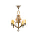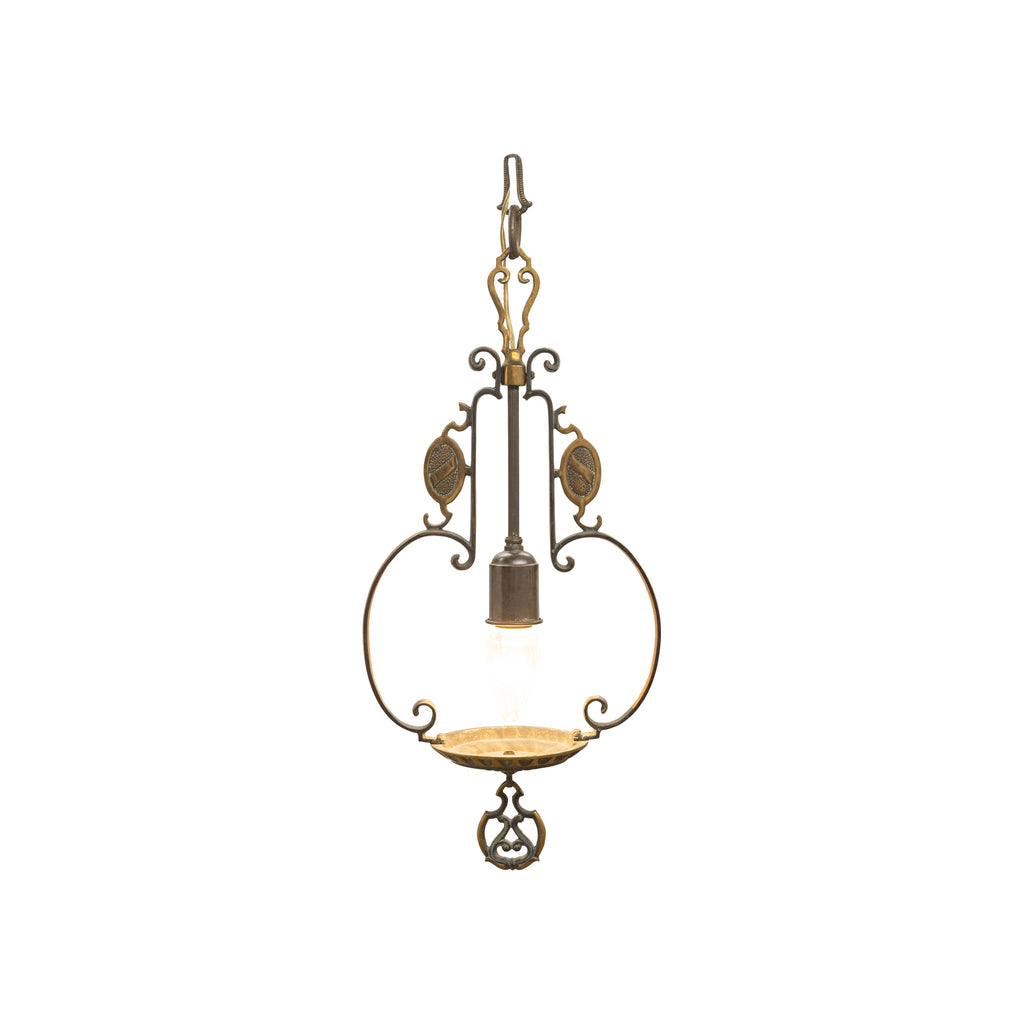 Two copperized art Nouveau 5 light with candle sconces and one single sconce. 18"D, extends 26". Single extends 16", 10" across. Without ceiling plank.