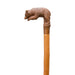 Circa 1880 Black Forest carved bear handle cane with two color glass eyes, natural twigspur shaft and hammered copper ferrule. A rare piece. Probably made for own use. 4"H x 4 1/2", overall 34 5/8"L