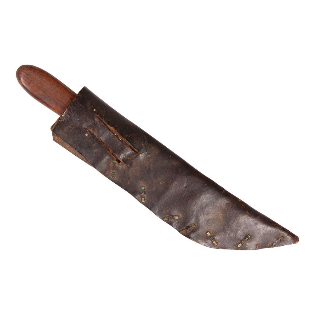 Blackfeet sheath of harness leather with brass rivets. Collected on reservation. Exceptional patina with knife that came with.