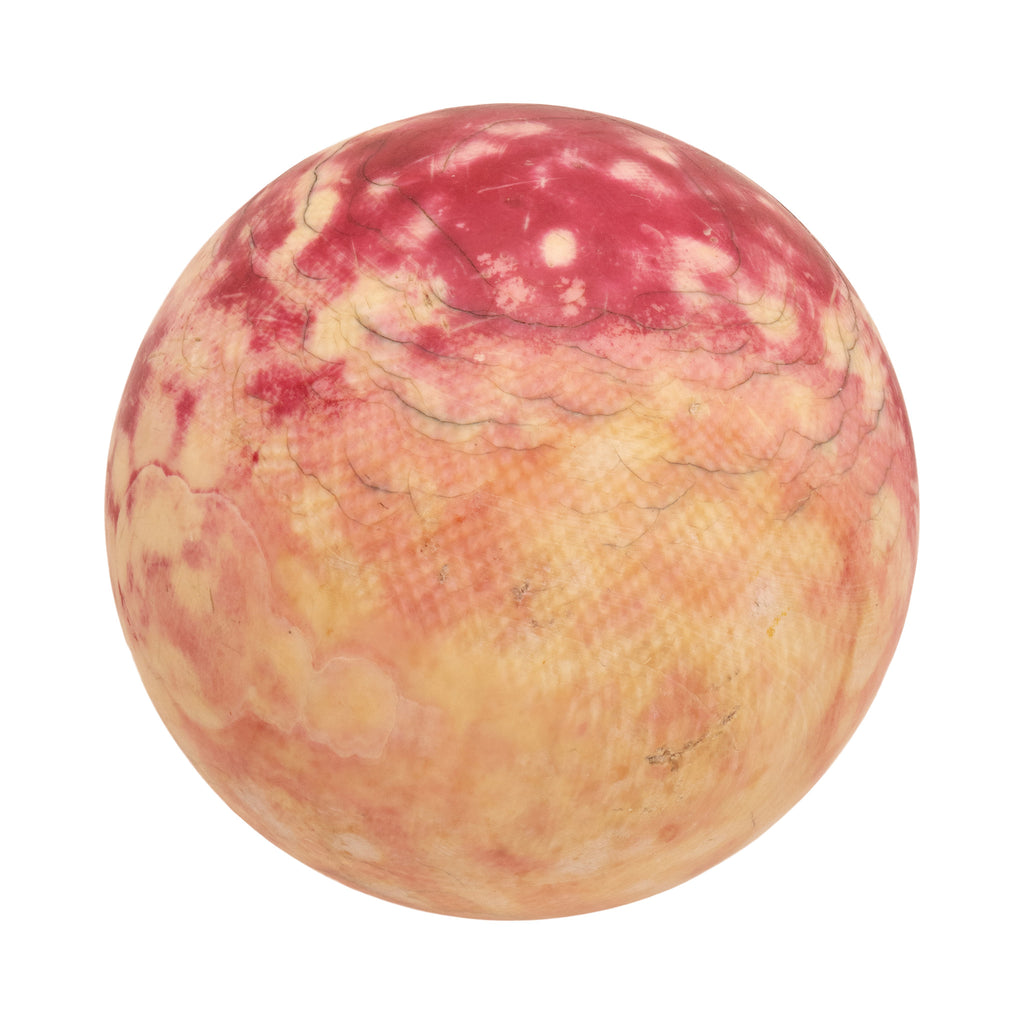 Large ivory Brunswick-Bulke-Collender billiard ball. Large ivory billiard cue ball with remnants of red chalk.