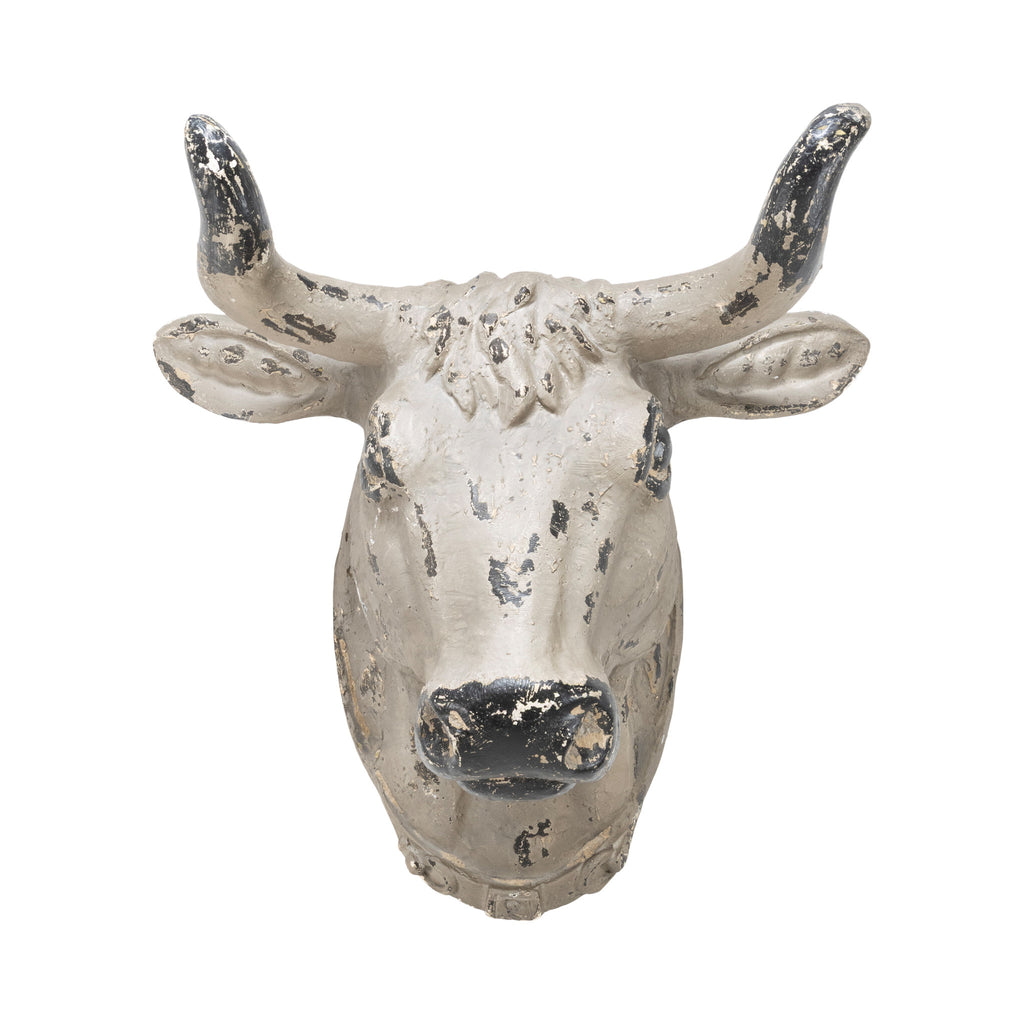 19th Century bull head advertisement trade sign used in a hardware or butcher shop. Retains a majority of its original paint. This early molded cast metal bull head measures 22"L x 22" horn spread, protrudes 13".